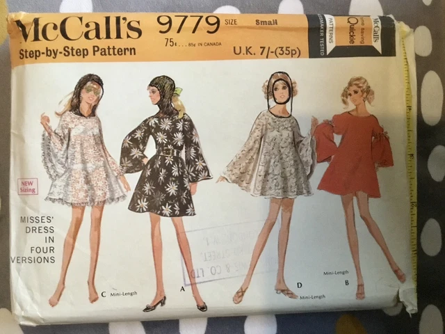1969 Vintage Mccalls 9779 Dress Sewing Pattern Size Small 2 00 Picclick Uk